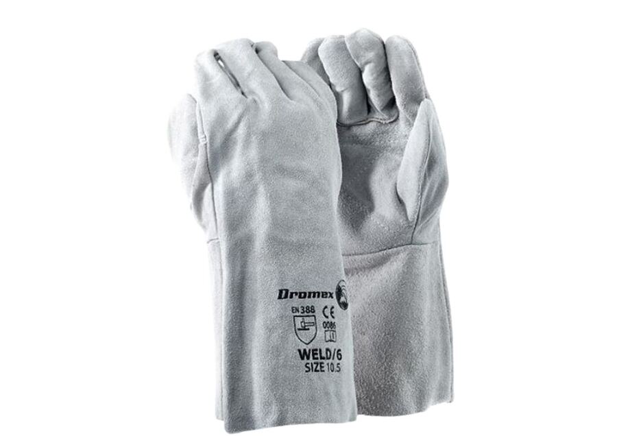 GLOVES LEATHER GREY ELBOW DBL PALM
